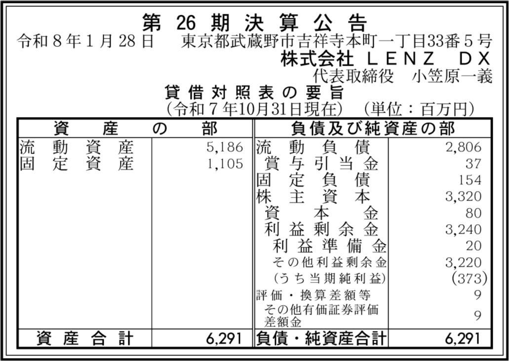 | 会社名 | 株式会社LENZ DX |