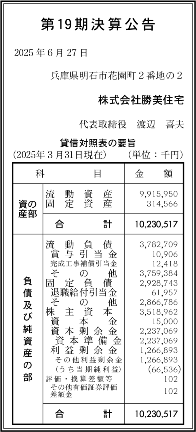 株式会社明石住建 兵庫県明石市 【2025年3月期】 |