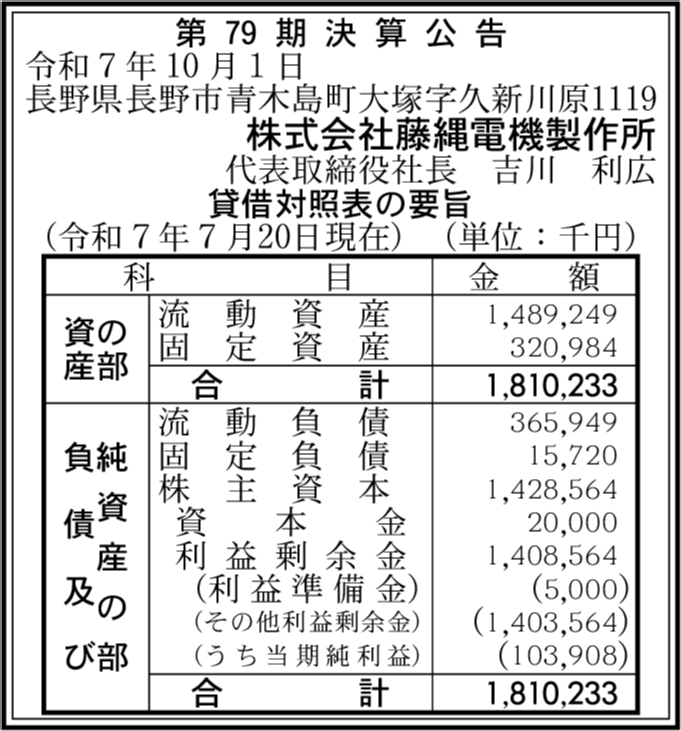 会社名 | 株式会社藤縄電機製作所 |
