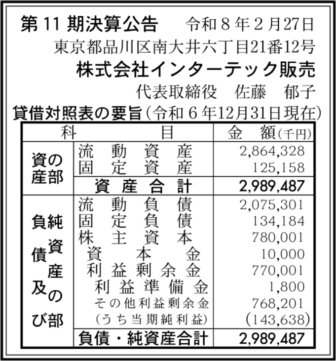 | 会社名 | 株式会社インターテック販売 |