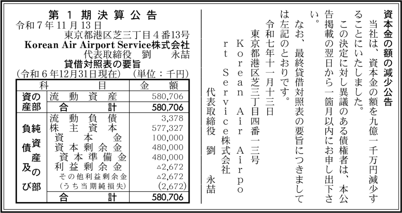 Korean Air Investment Japan株式会社 東京都港区 【2024年12月期】 |