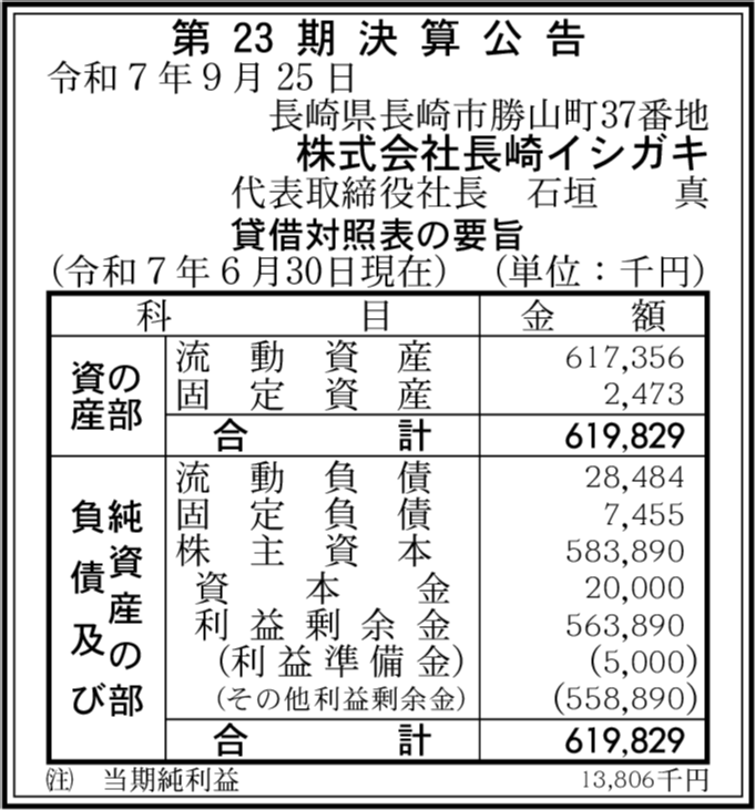 株式会社Chedi 長崎市 【2024年10月期】 |