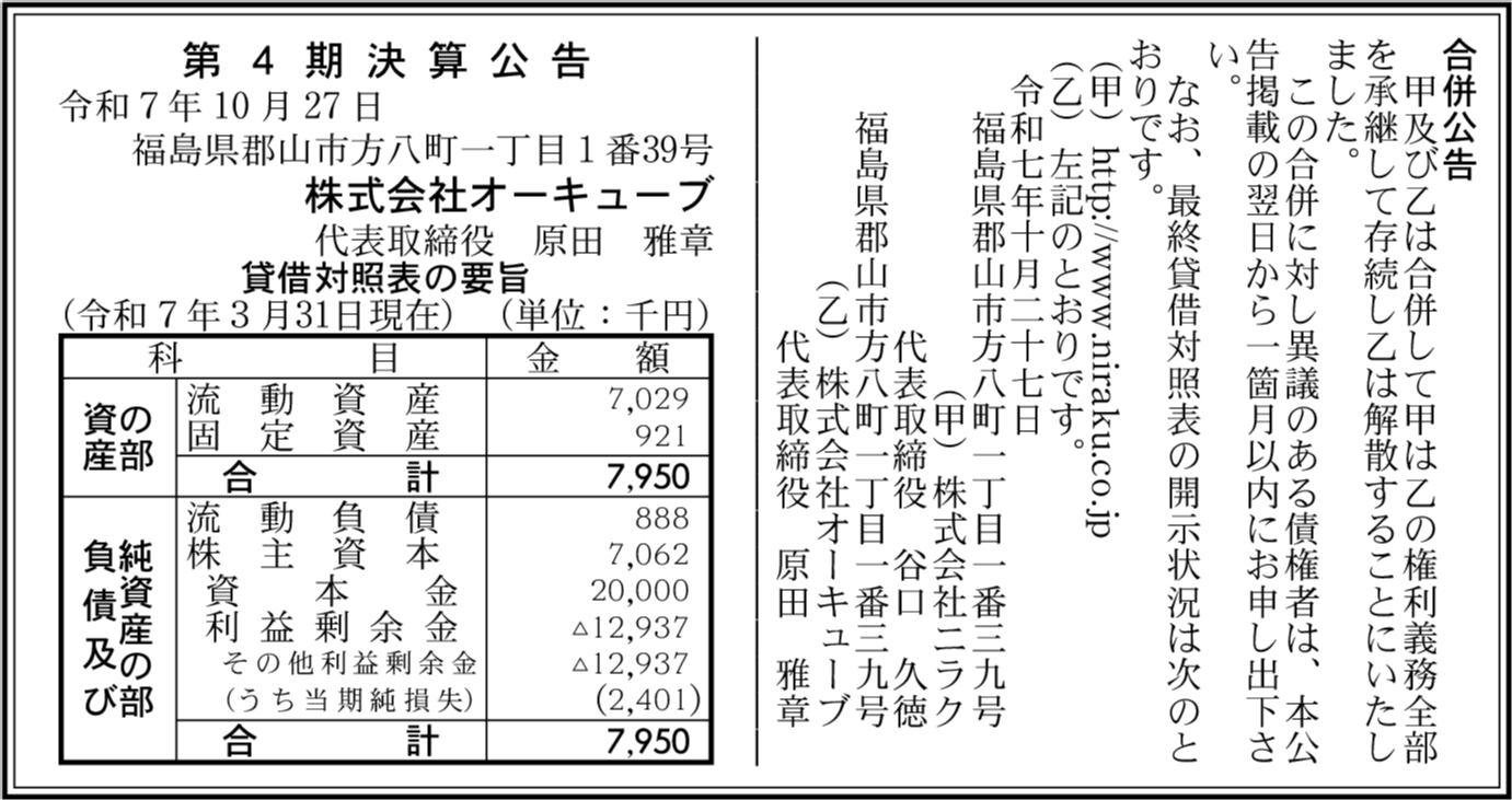 アルファクラブ株式会社 福島県郡山市 【2025年6月期】 |