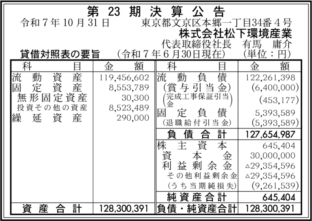 株式会社松下産業ホールディングス 東京都文京区 【2024年6月期】 |