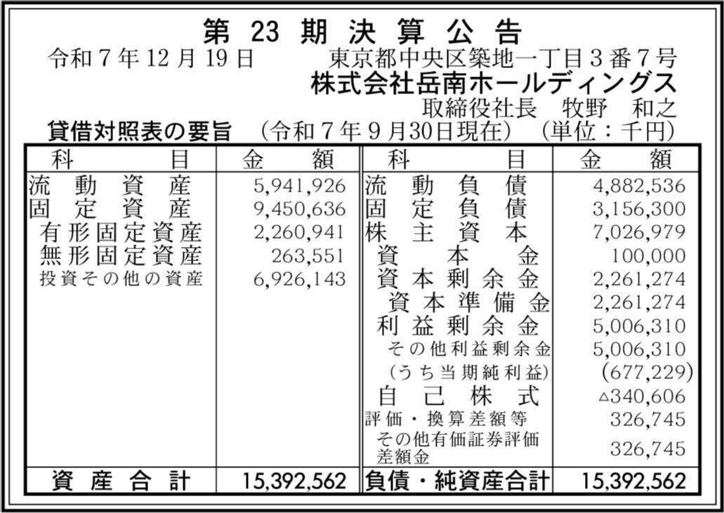 岳南建設株式会社 東京都中央区 【2025年9月期】 |