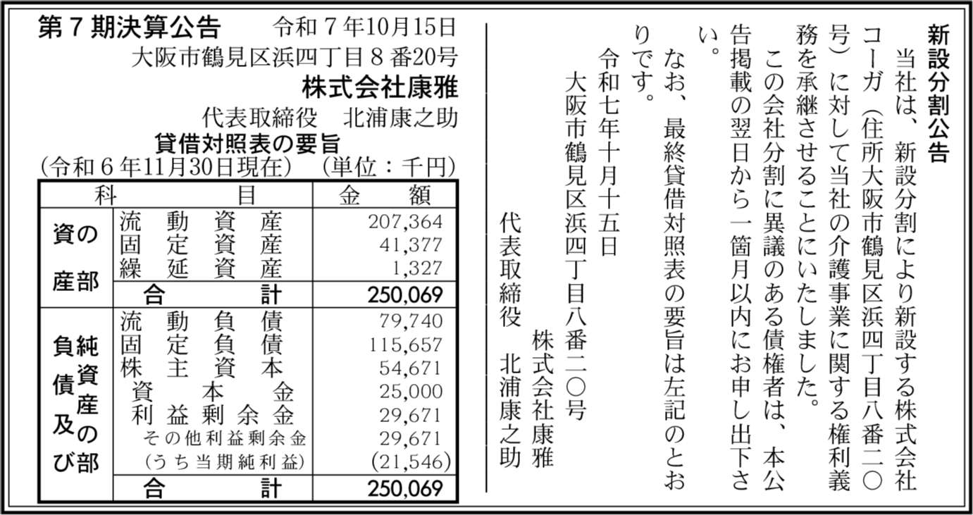 株式会社ダイコウ 大阪市鶴見区 【2025年6月期】 |