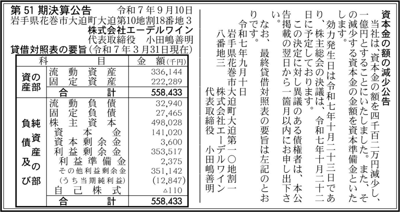 くみあい肥料株式会社 岩手県花巻市 【2025年3月期】 |