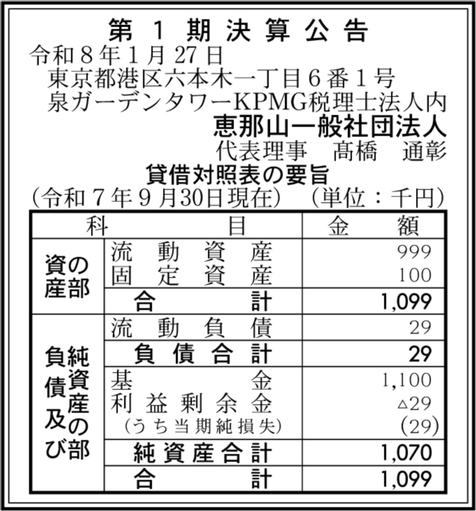 富岳一般社団法人 東京都港区 【2025年9月期】 |