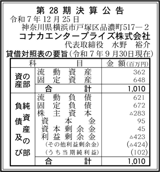 コナカエンタープライズ株式会社 神奈川県横浜市戸塚区 |