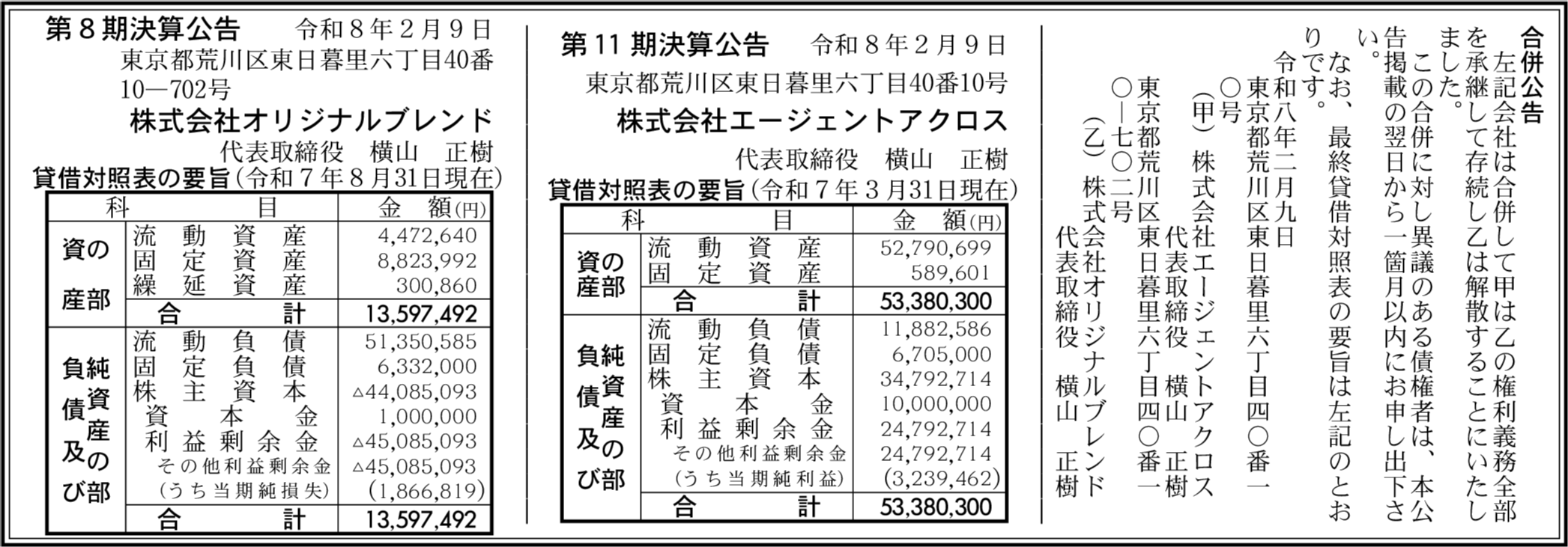 株式会社オリジナルブレンド 東京都荒川区 【2025年8月期】 |