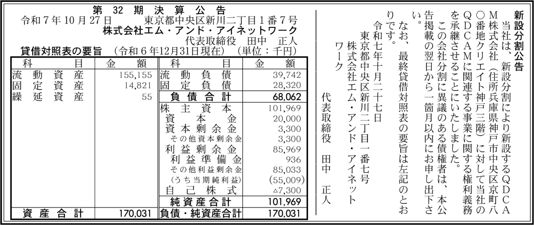 | 会社名 | 株式会社エム・アンド・アイネットワーク |