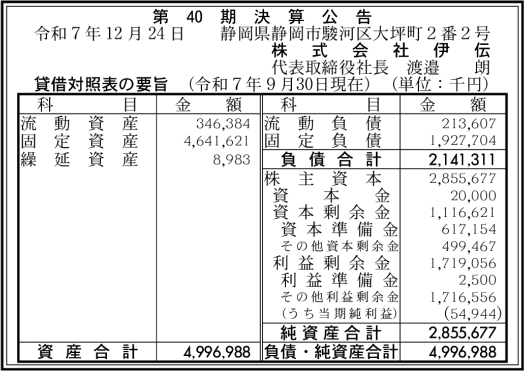 株式会社伊豆屋 静岡県静岡市駿河区 【2025年3月期】 |