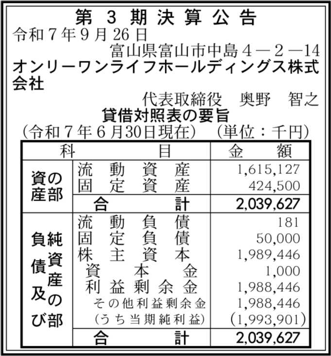 会社名 | オンリーワンライフホールディングス株式会社 |