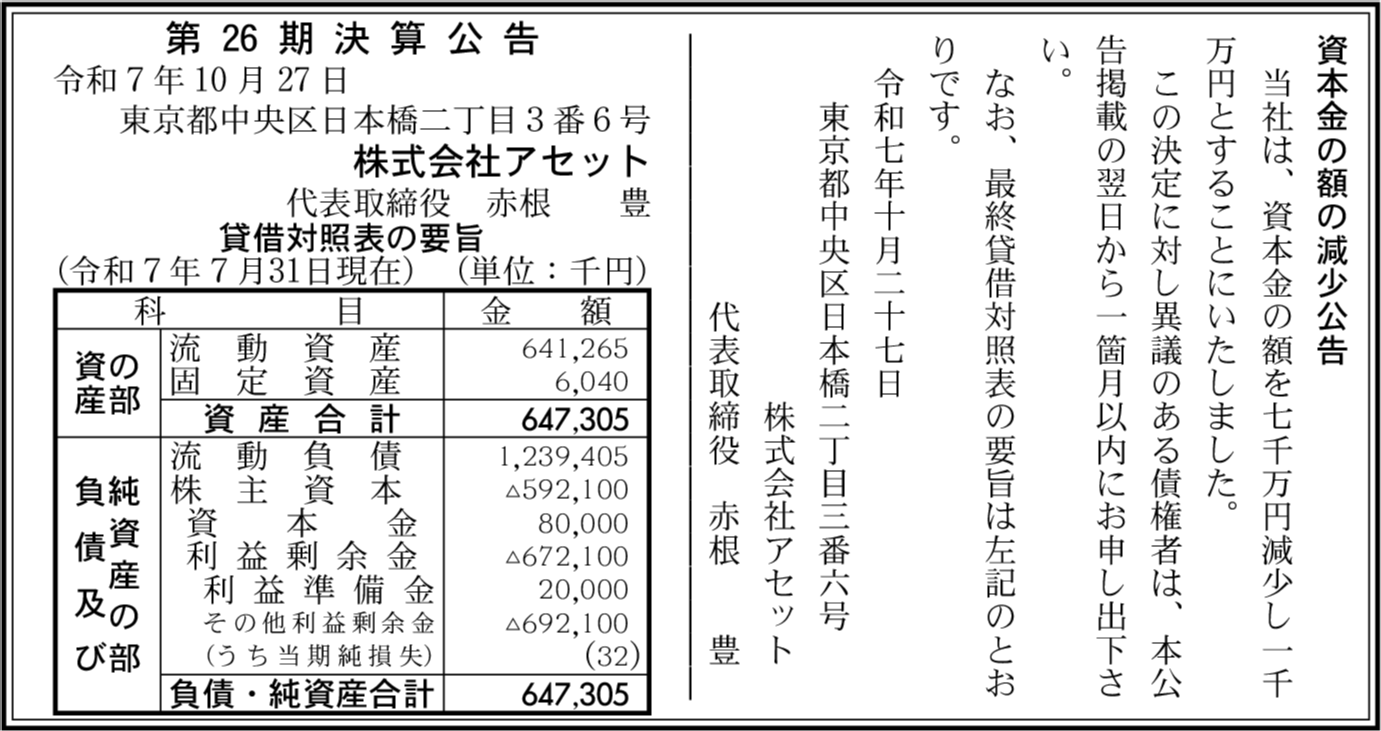 | 会社名 | 株式会社アセット |