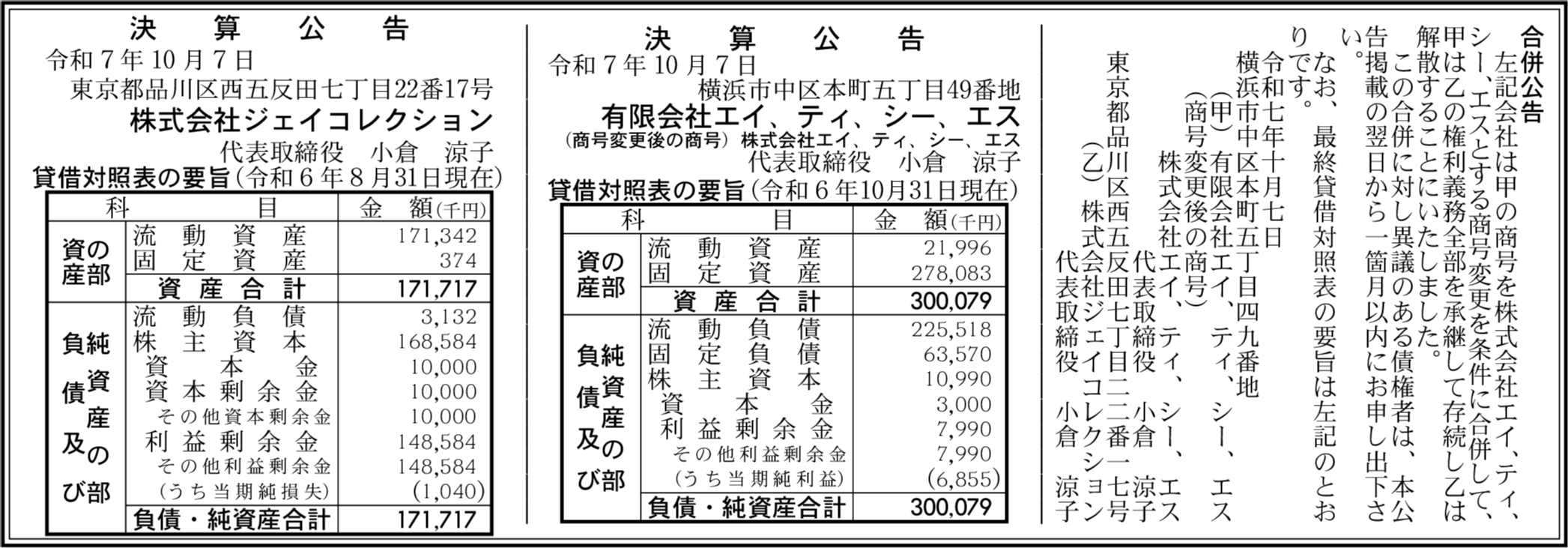 株式会社ジェイコレクション 東京都品川区 【2024年8月期】 |