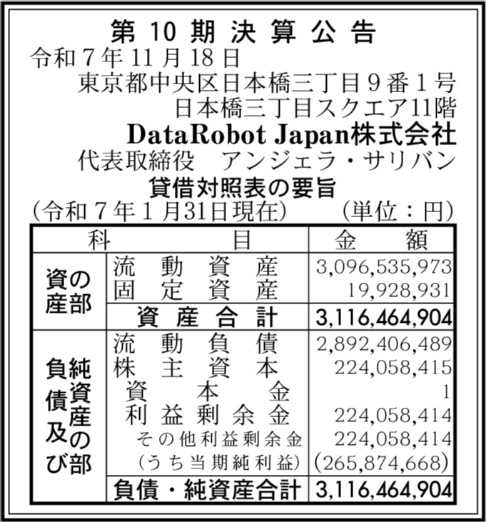 | 会社名 | DataRobot Japan株式会社 |