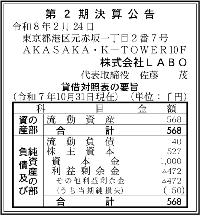 東京都港区元赤坂一丁目2番7号AKASAKA・K-TOWER10F 同じ住所の会社を検索 |