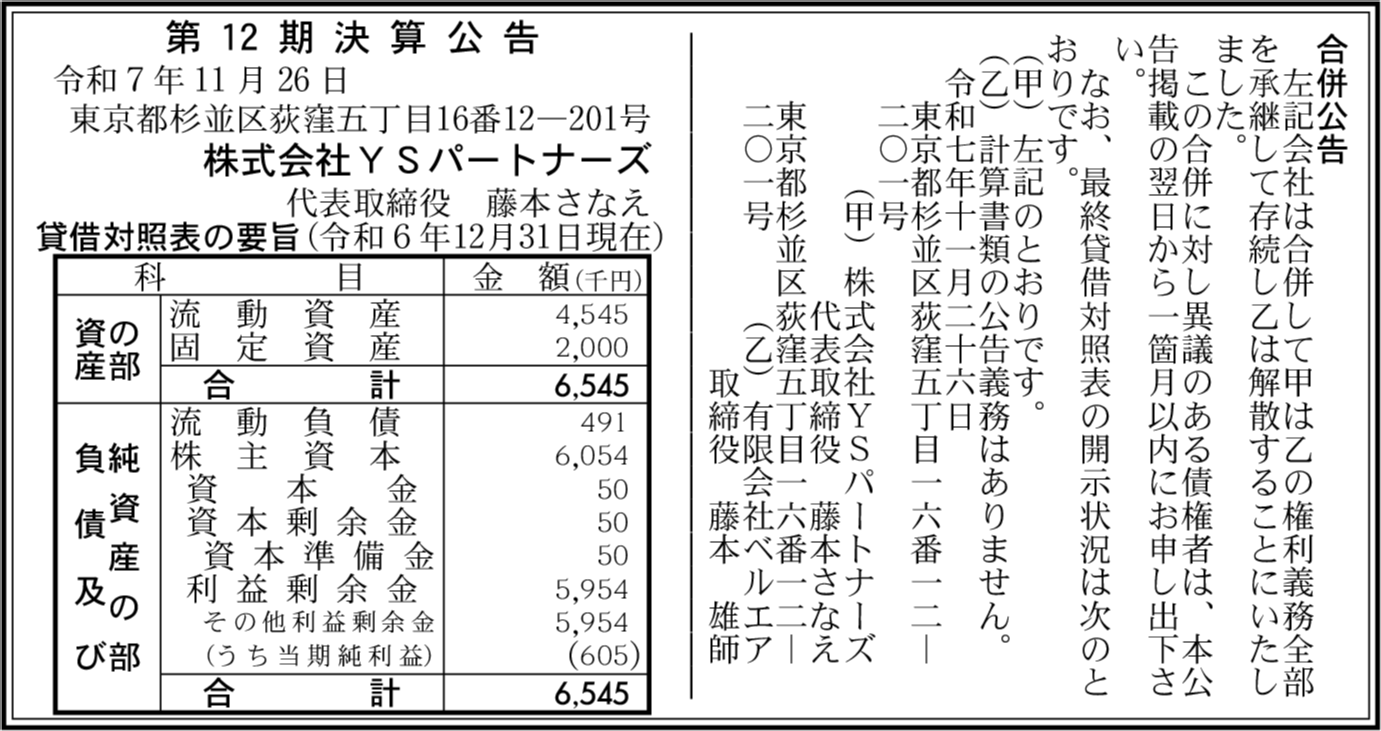 | 会社名 | 株式会社YSパートナーズ |