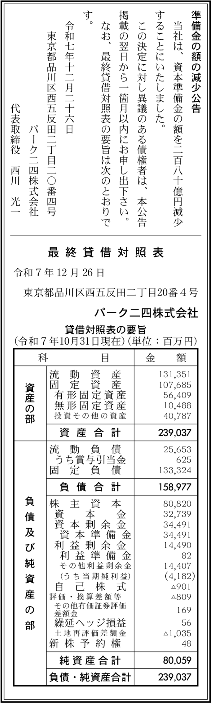 | 決算末日 | 2025年10月31日 |