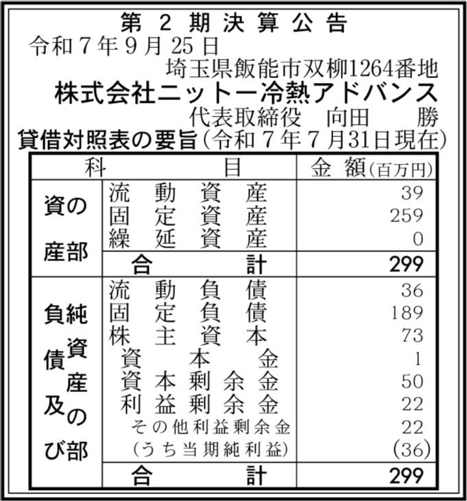 株式会社ニットー冷熱製作所 埼玉県飯能市 【2025年3月期】 |