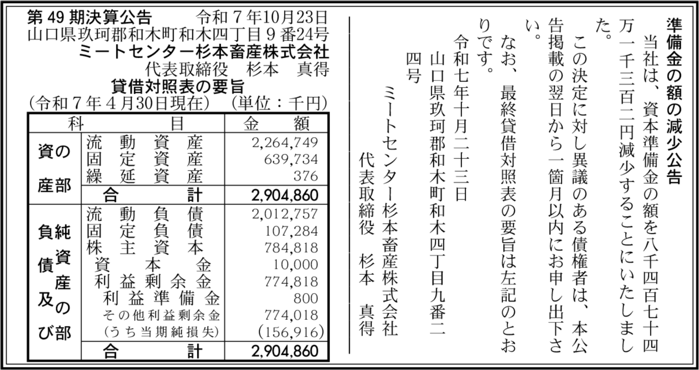 | 会社名 | ミートセンター杉本畜産株式会社 |