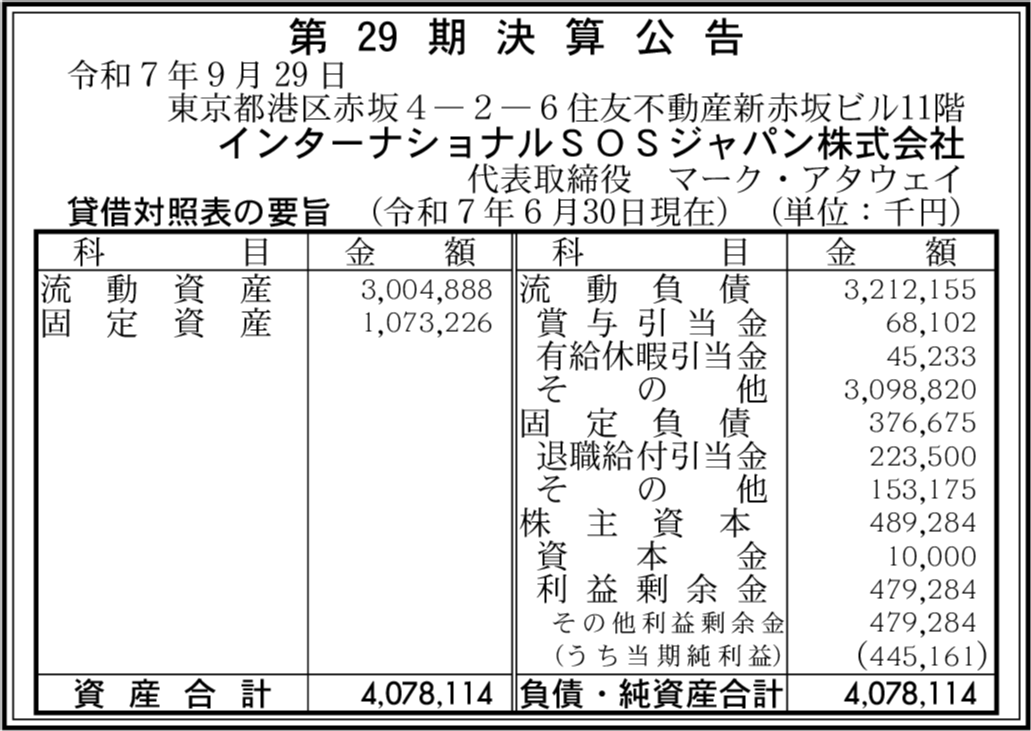 | 会社名 | インターナショナルSOSジャパン株式会社 |