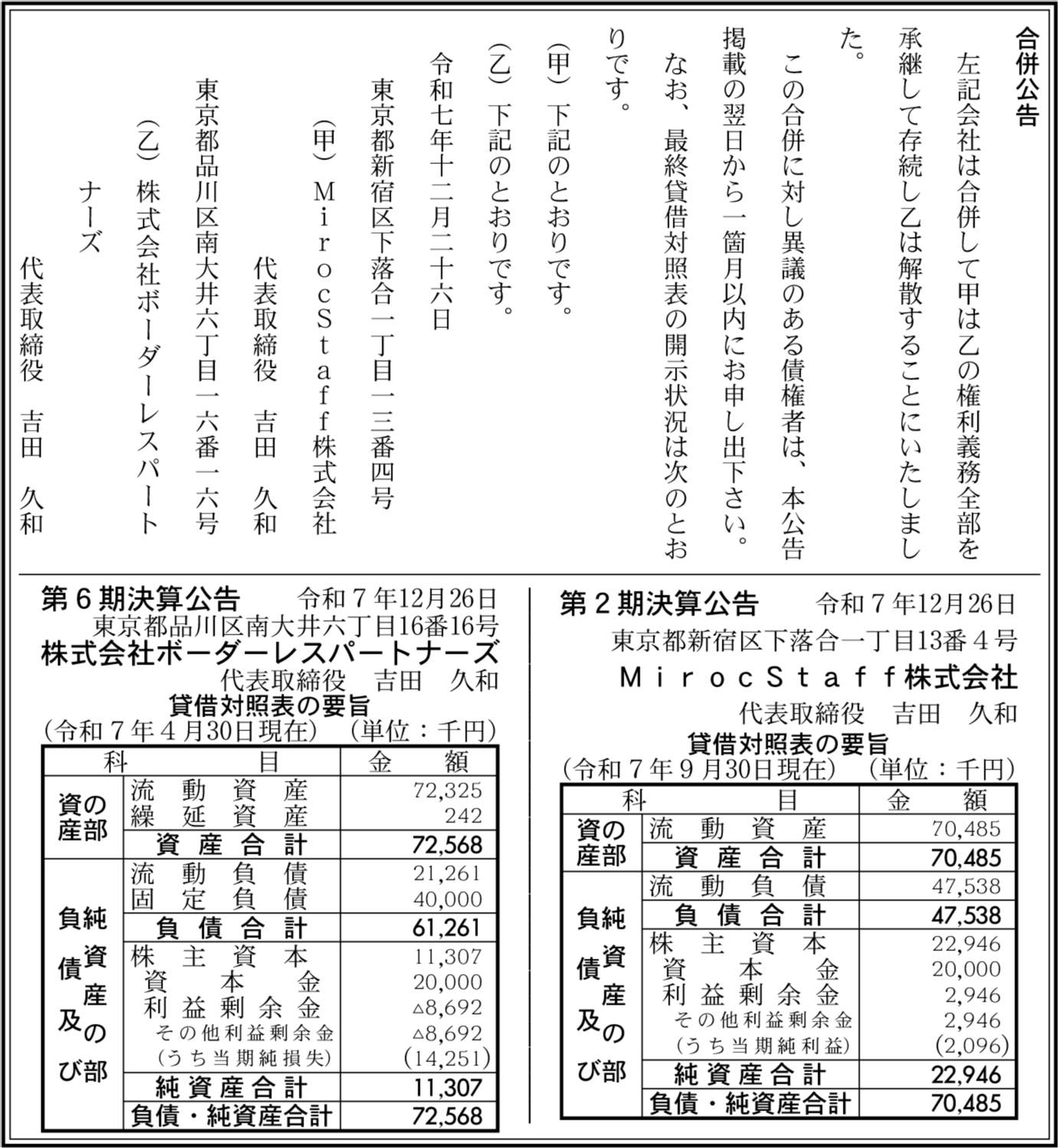株式会社ボーダーレスパートナーズ 東京都品川区 【2025年4月期】 |
