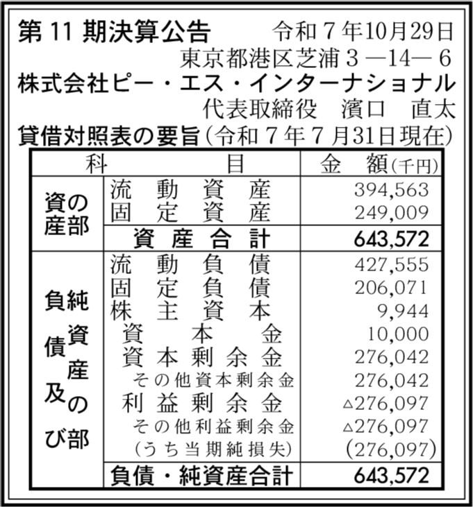 | 会社名 | 株式会社ピー・エス・インターナショナル |