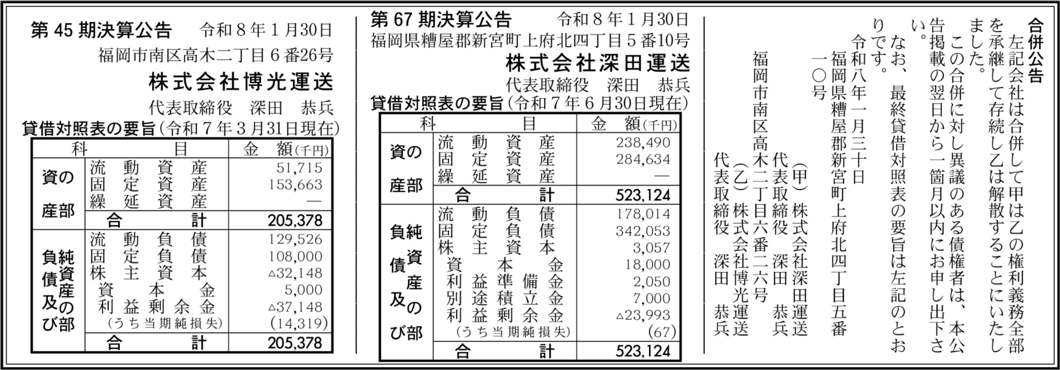 株式会社博光運送 福岡市南区 【2025年3月期】 |