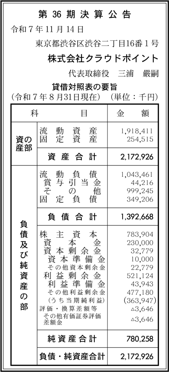 株式会社シーピープラス 東京都渋谷区 【2025年8月期】 |