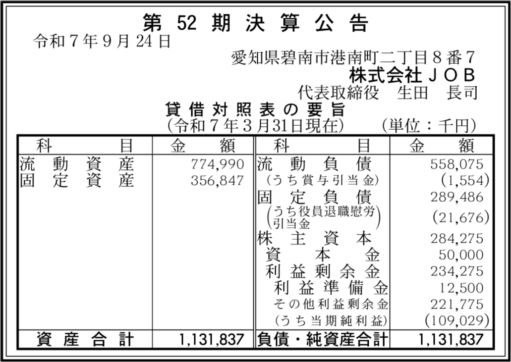 会社名 | 株式会社JOB |