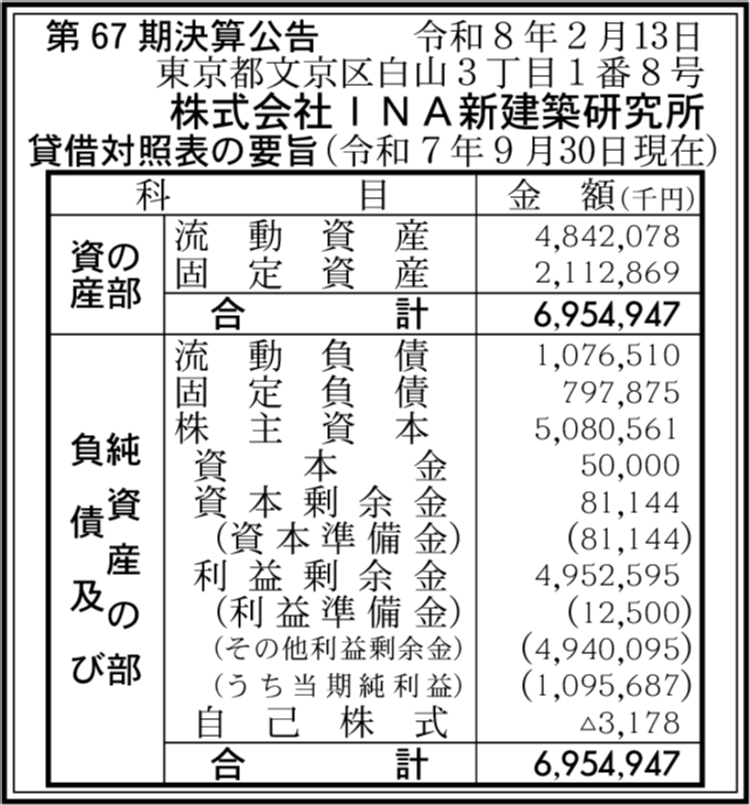 | 総資産 | 69億5,494万7,000円 (+16.59%) |