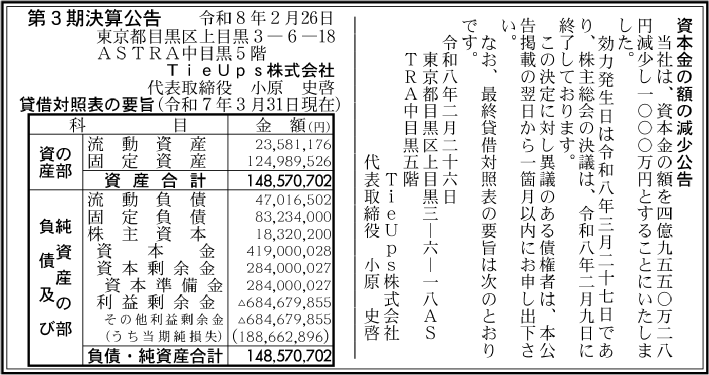 | 利益剰余金 | ▲6億8,467万9,855円 |