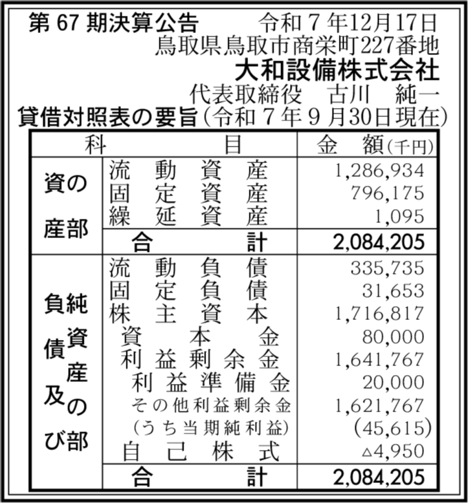 | 総資産 | 20億8,420万5,000円 (+0.73%) |