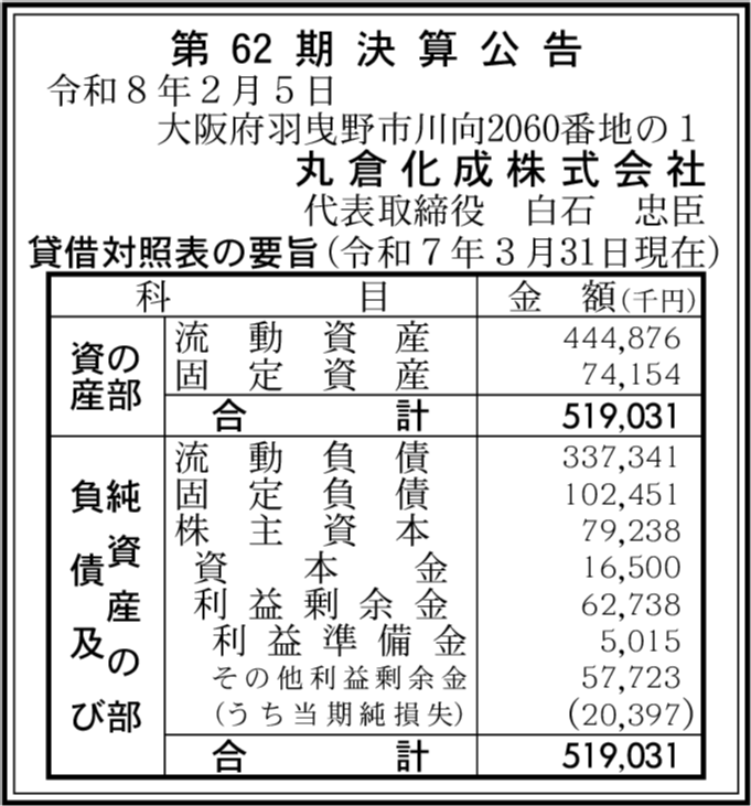 ひかり倉庫株式会社閉鎖済み 大阪府羽曳野市 【2025年3月期】 |