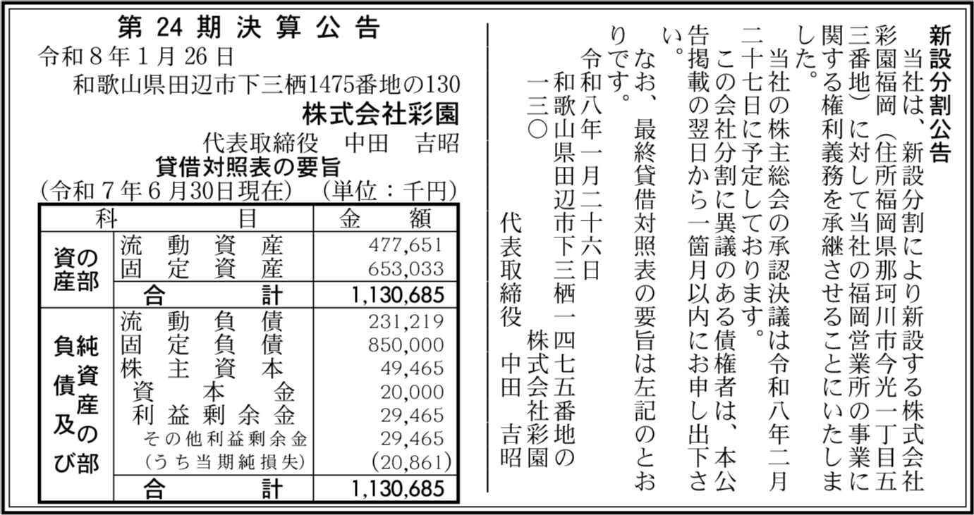 | 会社名 | 株式会社彩園 |