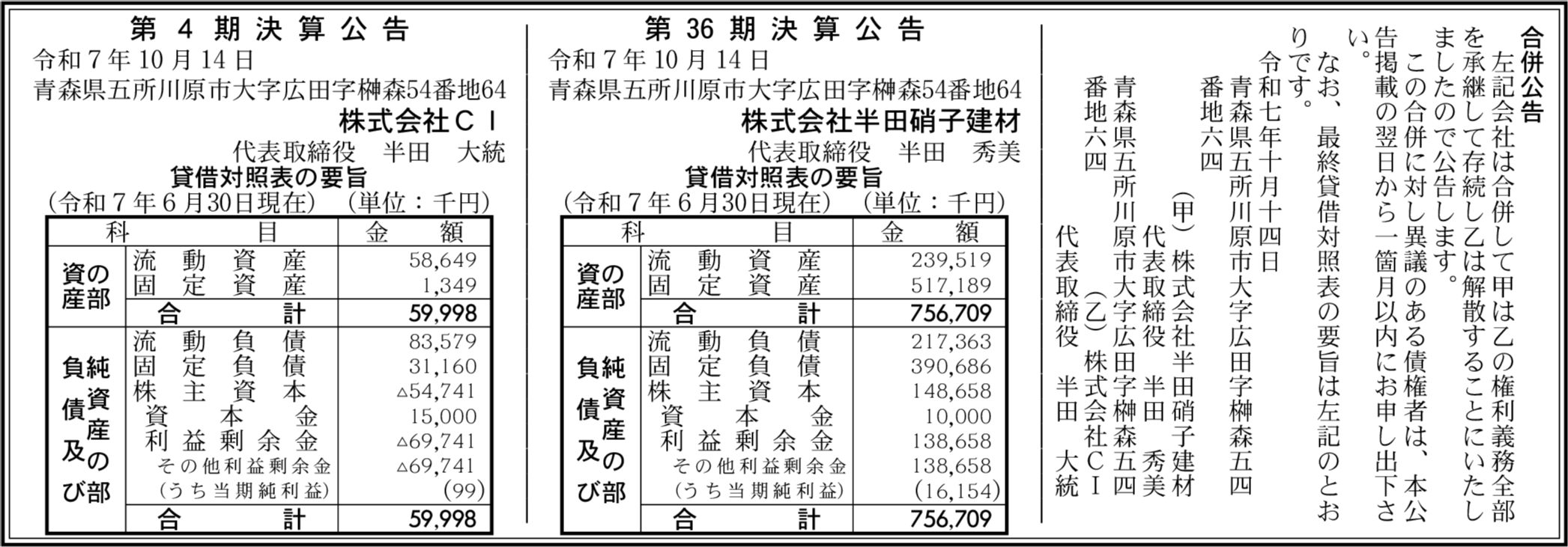 株式会社CI 青森県五所川原市 【2025年6月期】 |
