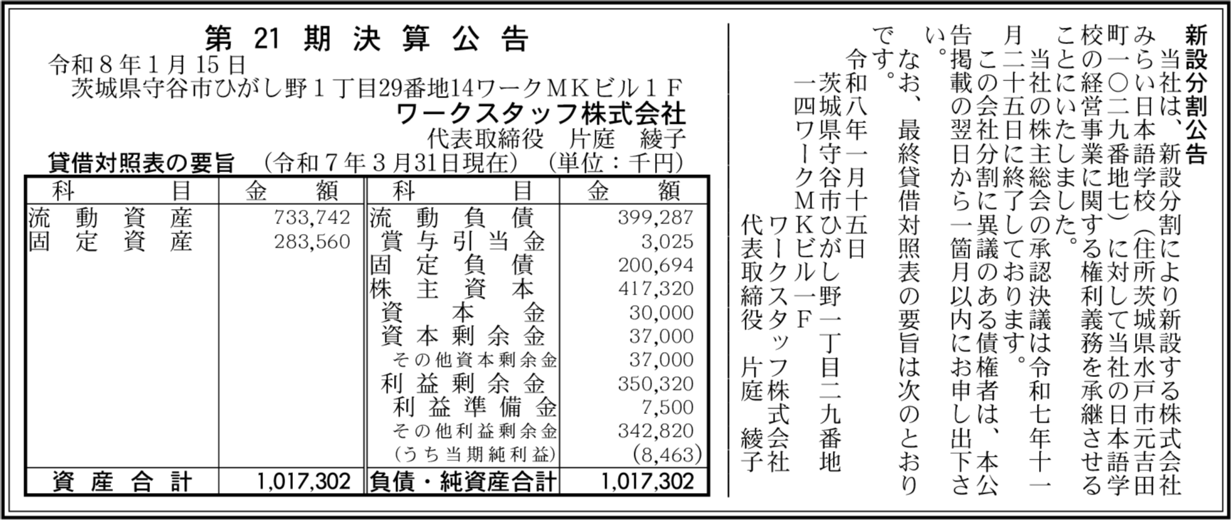 株式会社すずの木 茨城県守谷市 【2025年9月期】 |