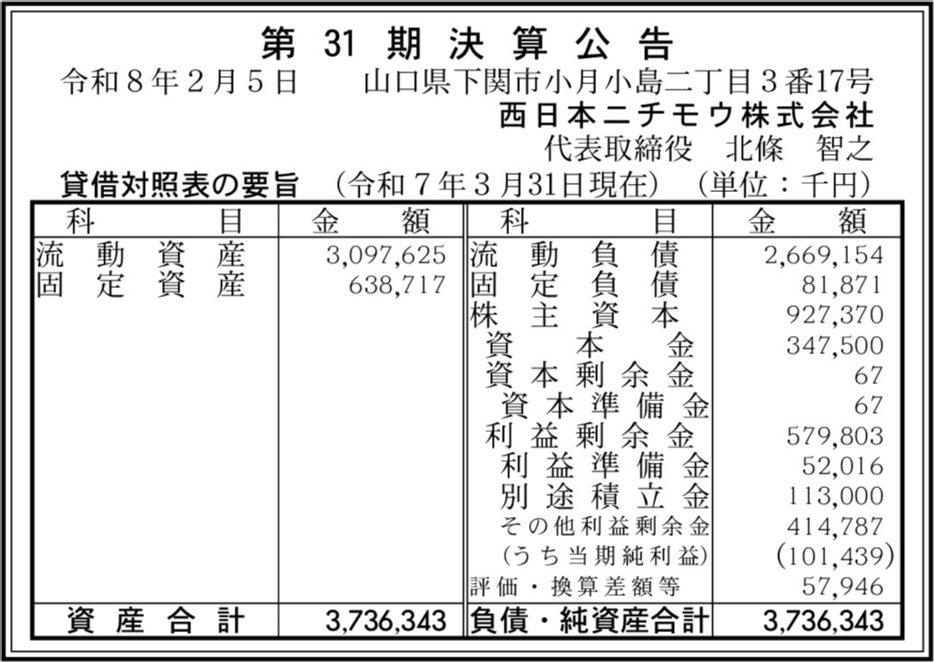 株式会社ニチモウワンマン 山口県下関市 【2024年3月期】 |