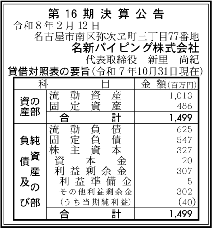 | 会社名 | 名新パイピング株式会社 |