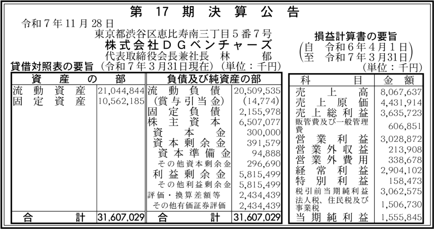 株式会社DG Strategic Investment 東京都渋谷区 【2025年3月期】 |