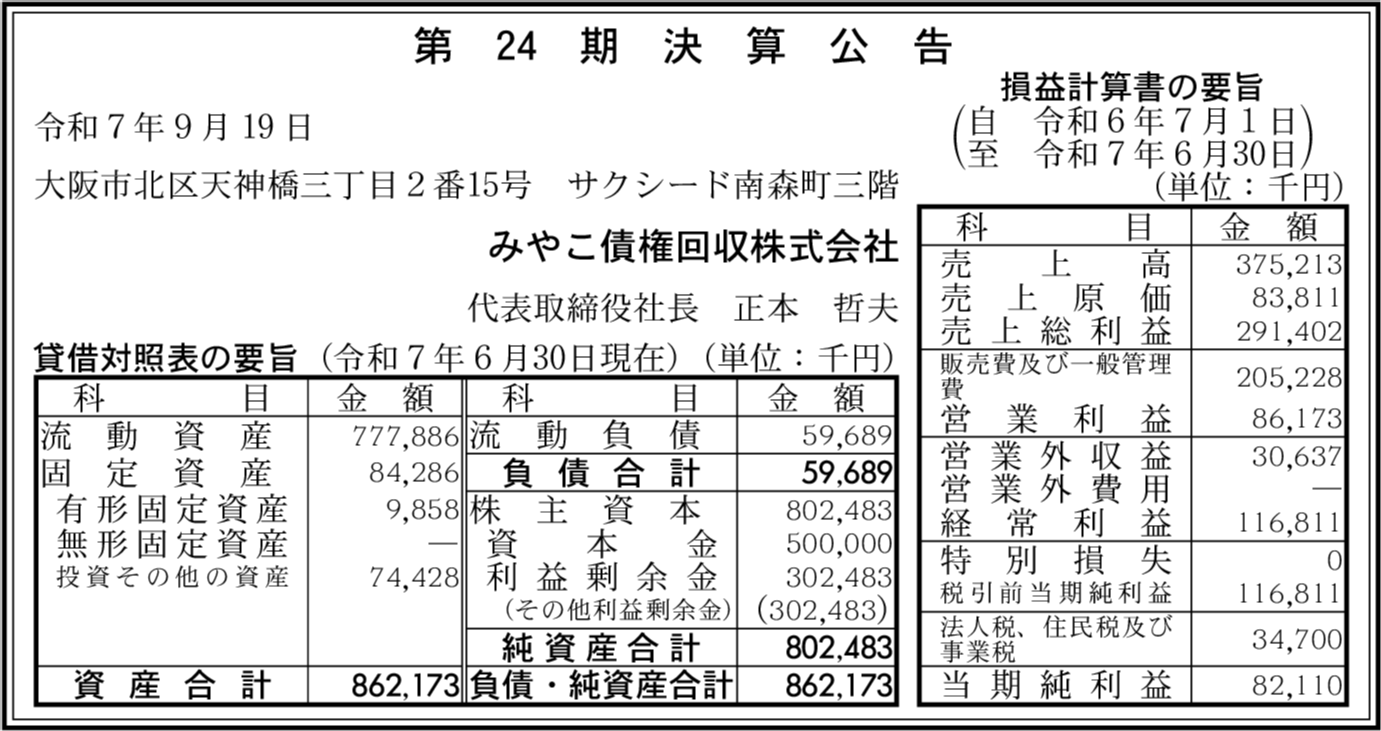 朝日企業株式会社 大阪市北区 【2025年6月期】 |