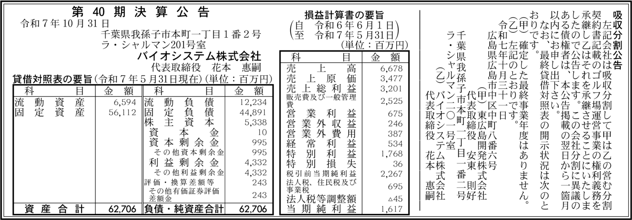 | 会社名 | バイオシステム株式会社 |