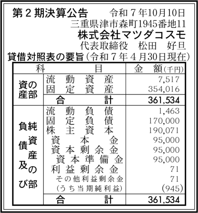 株式会社コスモ 三重県津市 【2021年6月期】 |