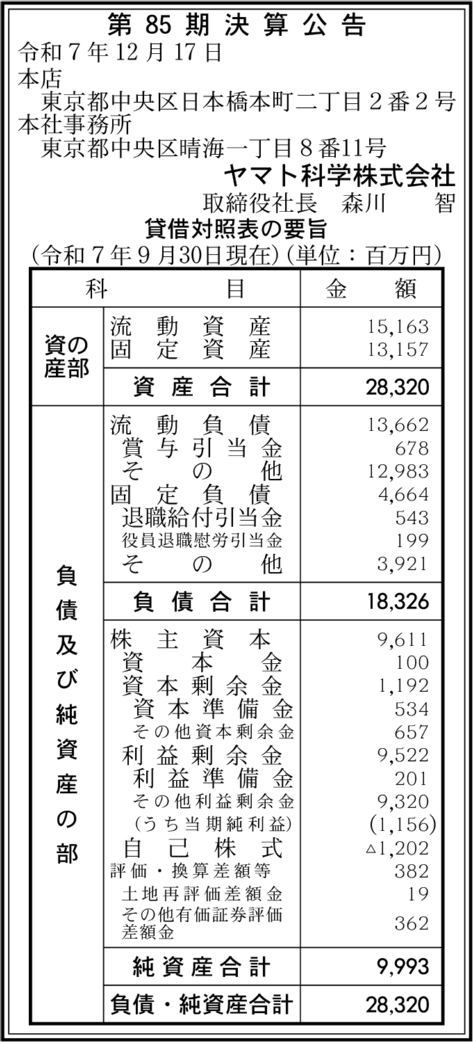 ヤマト科学グループホールディングス株式会社 東京都品川区 【2024年9月期】 |