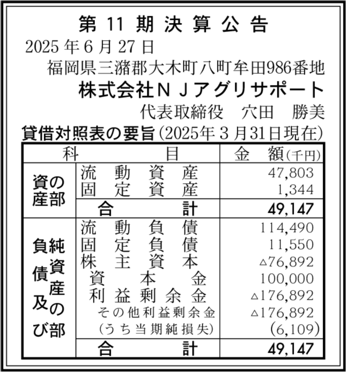 アスタラビスタサービス株式会社閉鎖済み 福岡県三潴郡大木町 【2023年12月期】 |