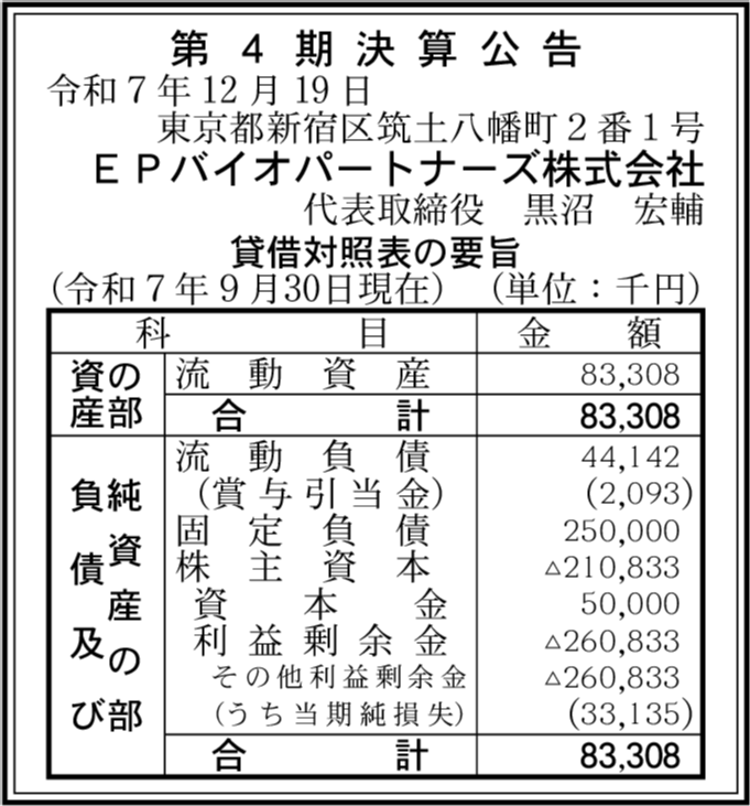 EPD株式会社 東京都新宿区 【2025年9月期】 |