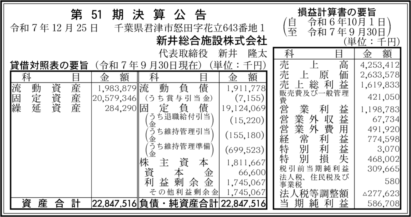 | 会社名 | 新井総合施設株式会社 |