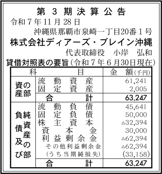 | 会社名 | 株式会社ディアーズ・ブレイン沖縄 |