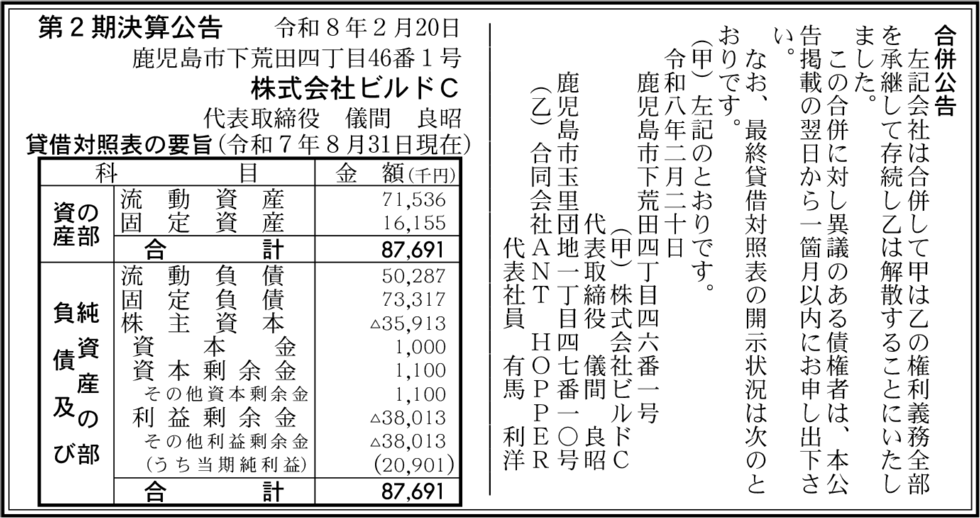 株式会社Be‐kind 鹿児島市 【2025年10月期】 |